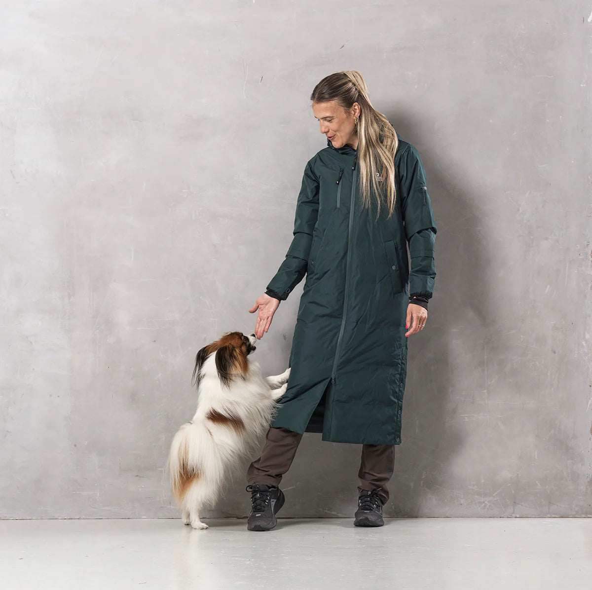 Her får du en 100% vandtæt og vindtæt frakke, der holder dig tør og varm, samtidig at med den er let og så behagelig, at du får lyst til at have den på hele dagen – også når hunden ikke er med.