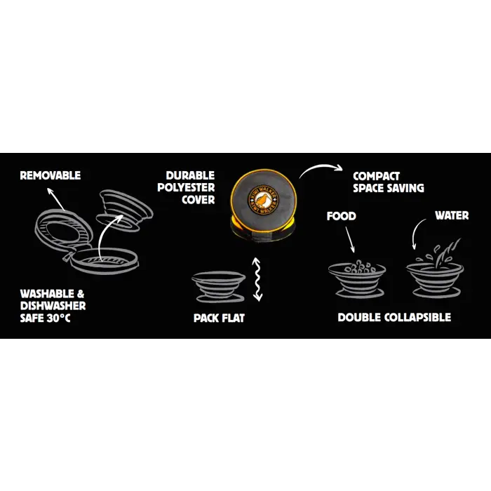 Simpelthen den bedste rejseskål til kæledyr på markedet. Indeholder ikke én, men to sammenklappelige silikoneskåle af høj kvalitet, der hver kan rumme op til 350 ml. Perfekt til at tilbyde både mad og vand til dit kæledyr, mens du er på farten. Skålene er forbundet med etuiet med velcro, så det er nemt at fjerne og sætte skålene på igen efter rengøring. Det superslanke, slidstærke etui er forseglet med en kraftig lynlås.