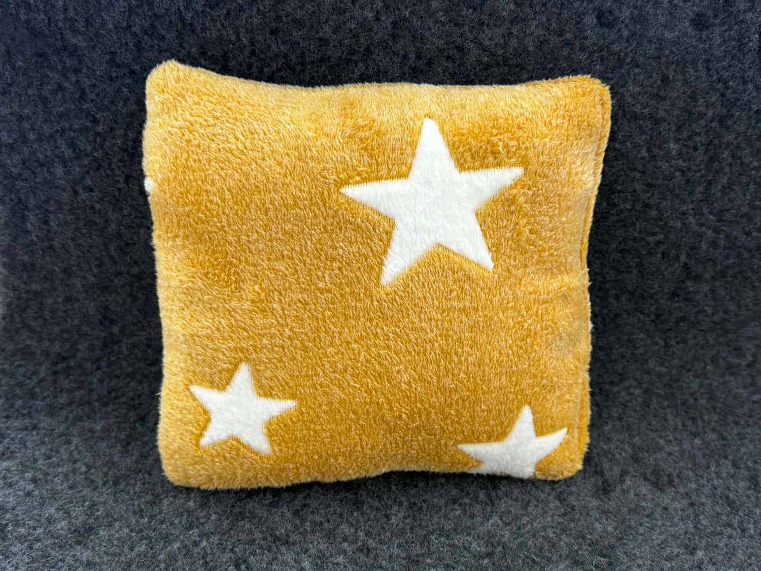 Wellness legetøj | Firkantet pude | Gul med hvide stjerner